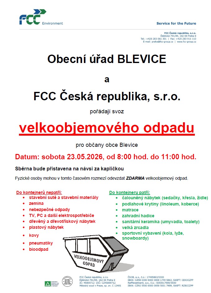 V sobotu 23. května 2026 proběhne mobilní svoz velkoobjemového a nebezpečného odpadu.